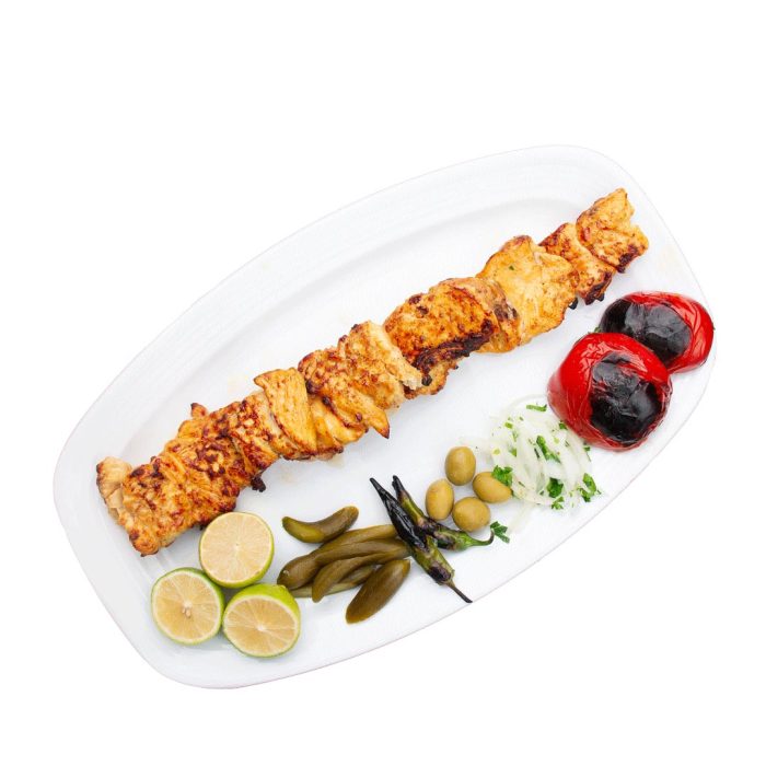 خیارشور ,زیتون ,فلفل کبابی ,گوجه کبابی ,نارنج ,یک عدد نان |